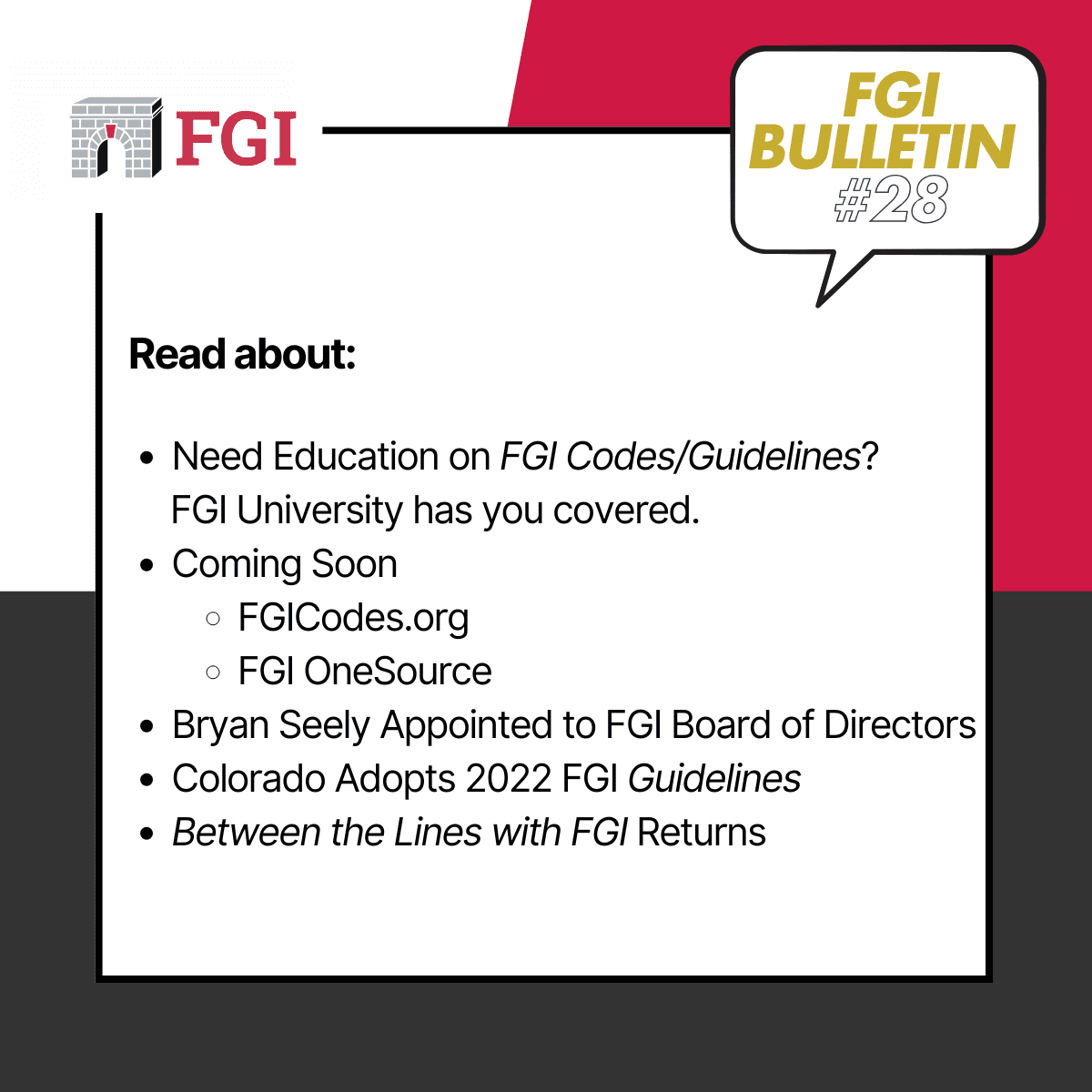 Need Education on FGI Codes/Guidelines? We’ve Got That! FGI is proud to announce the debut of FGI University, your new destination for professional education on...